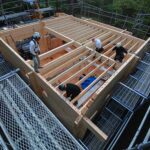 昨日から不安定な天候に悩まされながら三井の森H邸新築工事ログハウス組立進行中。 昨日から続けて本日も時折にわか雨に見舞われながら着々と進行。。。。。 下記コマ送りではありませんが、 1F壁組完成。 建物四方壁連結。 2F […]