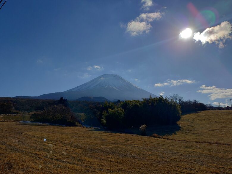 丁度朝霧高原が富士山の西山麓に位置するので、太陽の影になりこんな感じです。