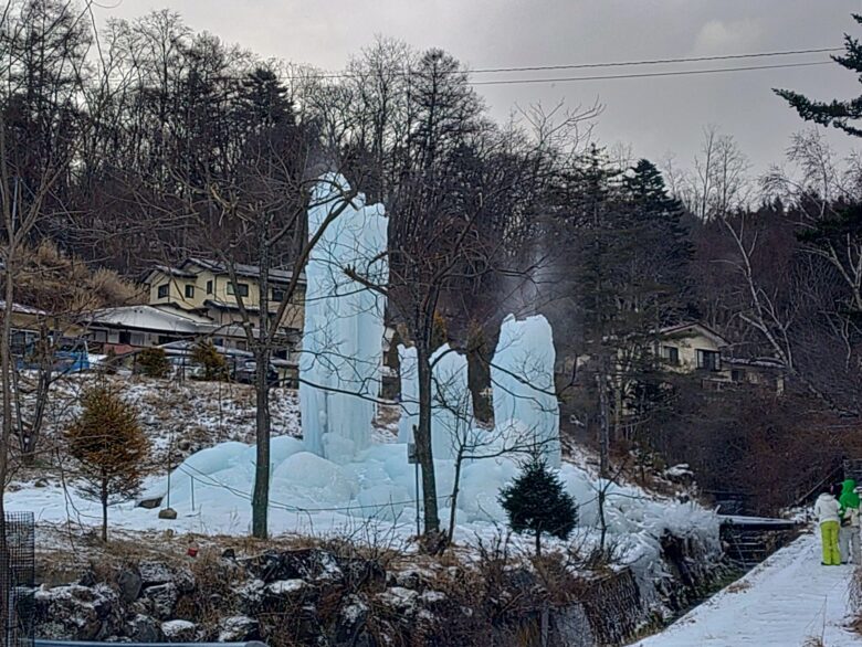 蓼科湖畔の氷柱は順調に成長中!