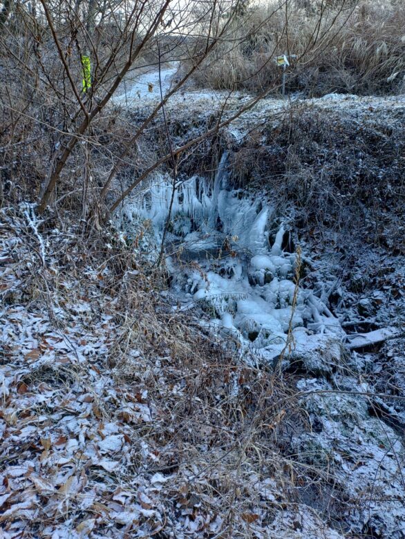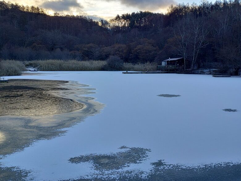 一昨年亡くなった愛犬ショコラと何時もの散歩コースの釣り堀も氷が張り、、、、