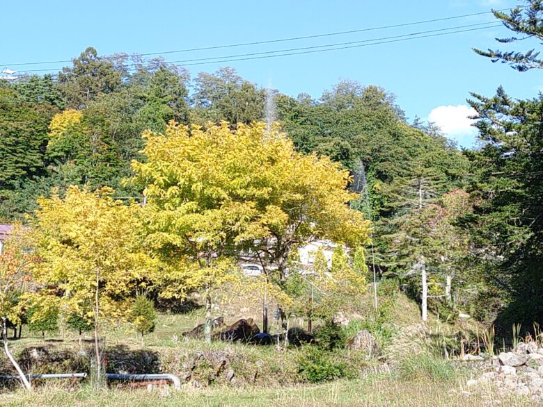 そしてここは極寒の冬氷瀑が現れる場所ですが秋の今はゴールデンアカシアが見頃で、こんな感じです。