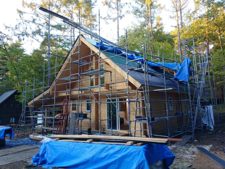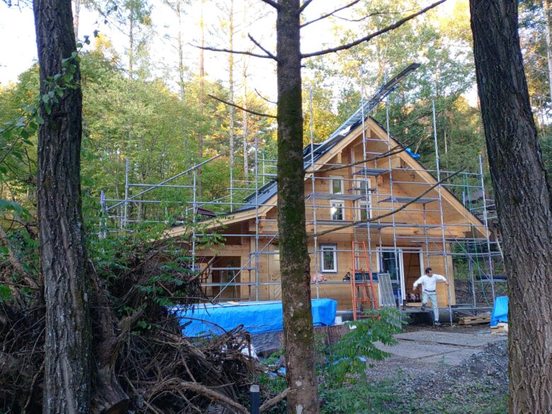 昨晩の蓼科は雨、だったのですが朝には上がり、雨で洗われた空気が澄んで日差しが眩し位の朝でした。 本日三井の森H邸新築工事