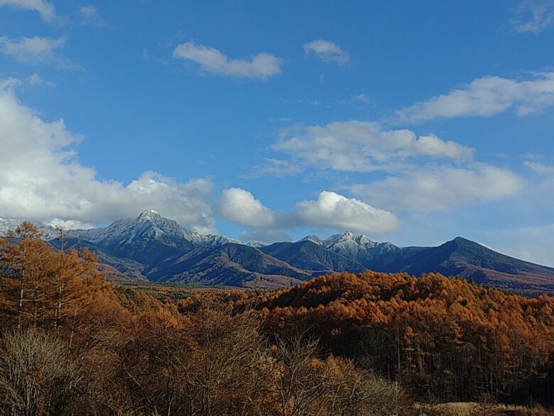 まだ今日はそれほど寒くはない一日でしたが、八ヶ岳は寒気の影響で山頂付近は雪化粧です。