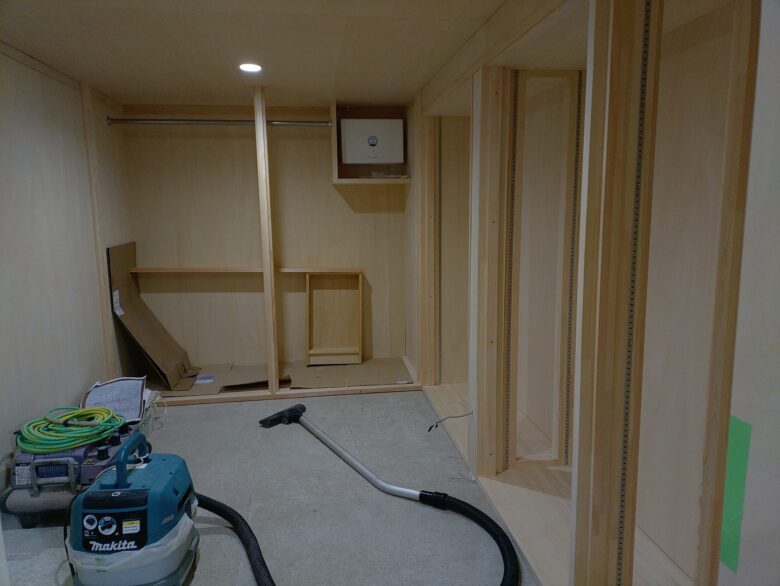 正面の四角箱は除湿器です。地下には湿気が籠りやすいので設置しました。