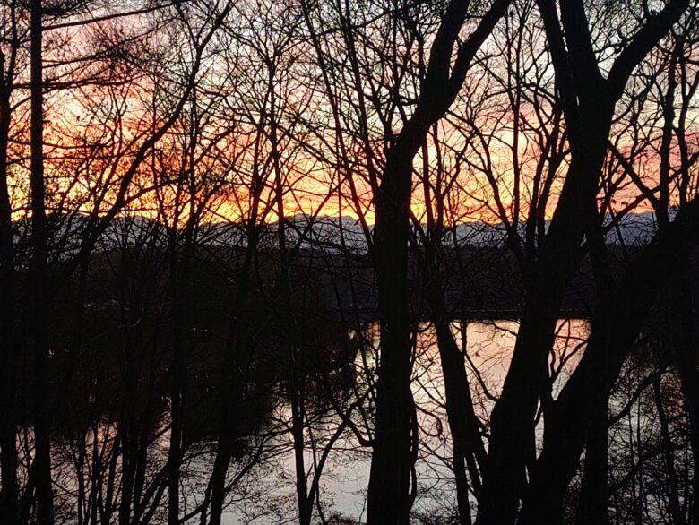 一昨日蓼科湖畔から見る夕日。
