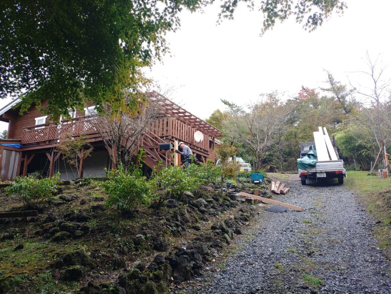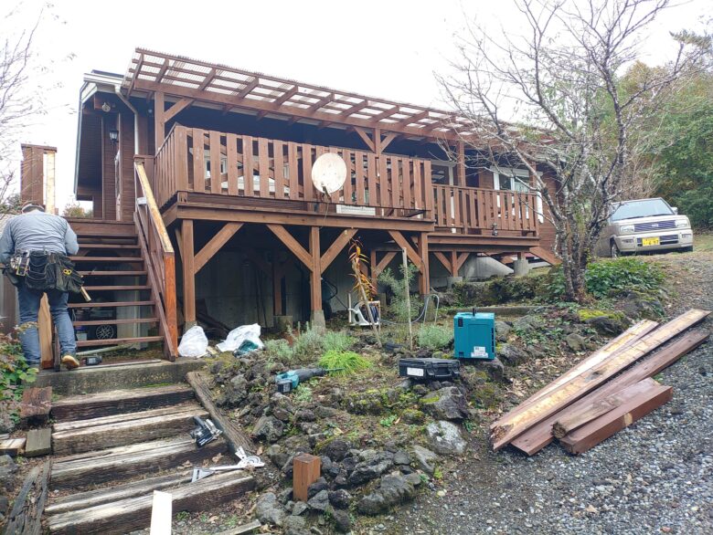 一昨日土曜日は20年前、朝霧高原で建築しました山荘のウッドデッキの修繕に行って参りました。
