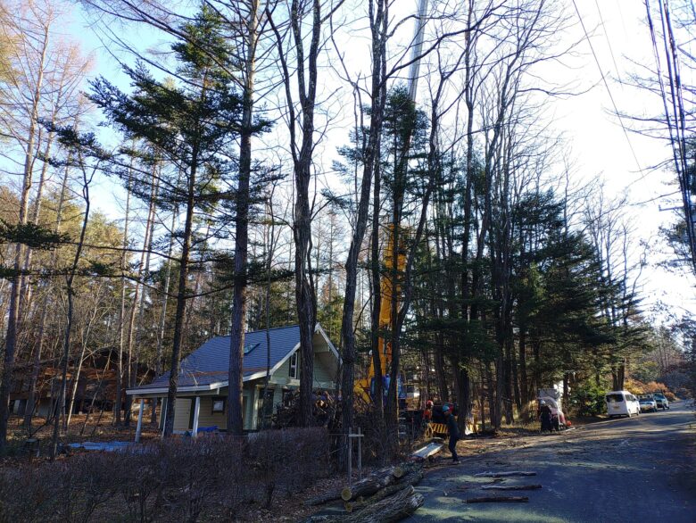 そして本日の私は三井の森H邸新築工事の外構伐採工事でした。
