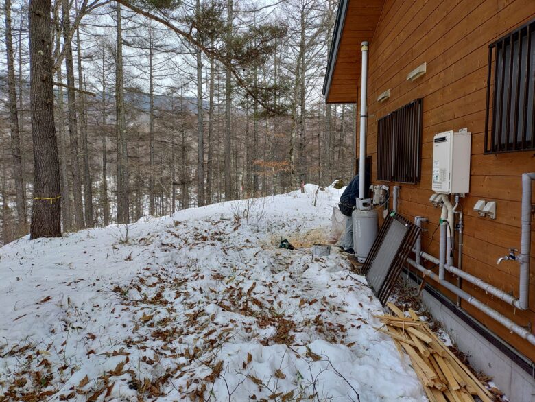 さて、本日より蓼科ビレッジ茶臼台のお客様より依頼を受けています山荘りフォーク工事を着手。