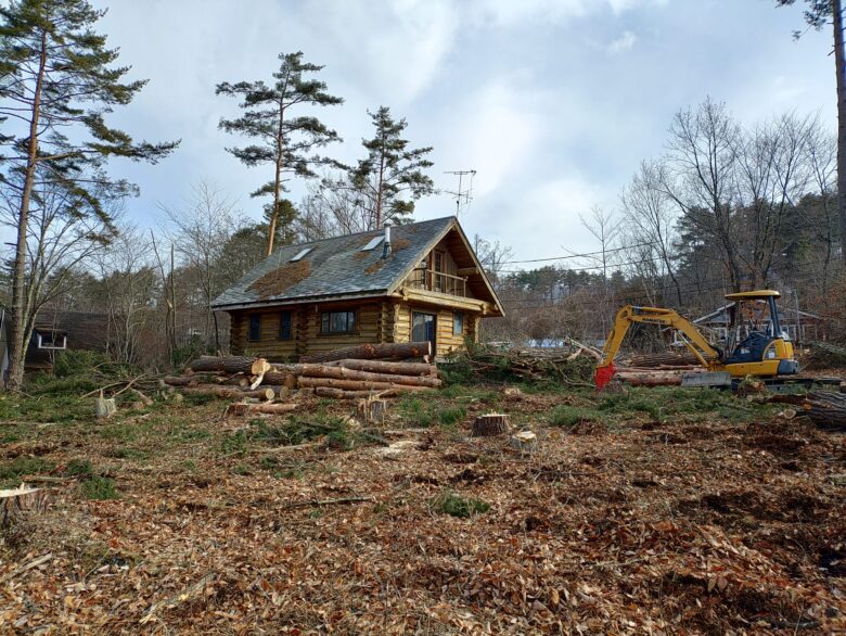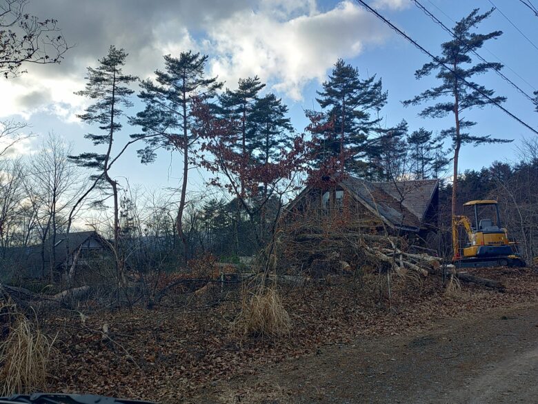 今日の私はと言うと、弊社所有の山荘敷地内の伐採工事。