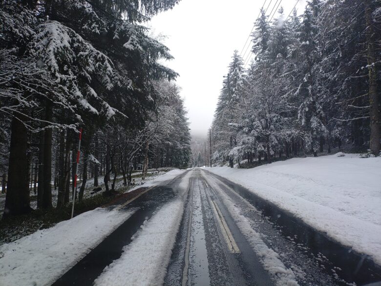 しかし標高の高い近くのスキー場、車山高原付近は雪でした。