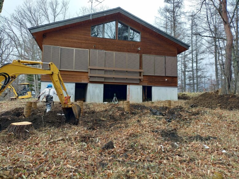 現在進行中のコテージ工事と並行して、蓼科ビレッジ某山荘のリフォーム工事も進行中です。