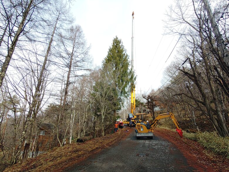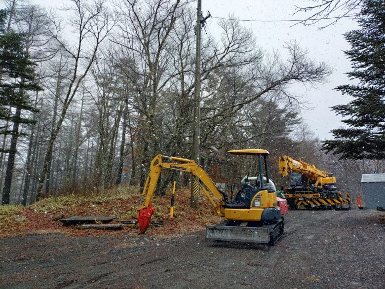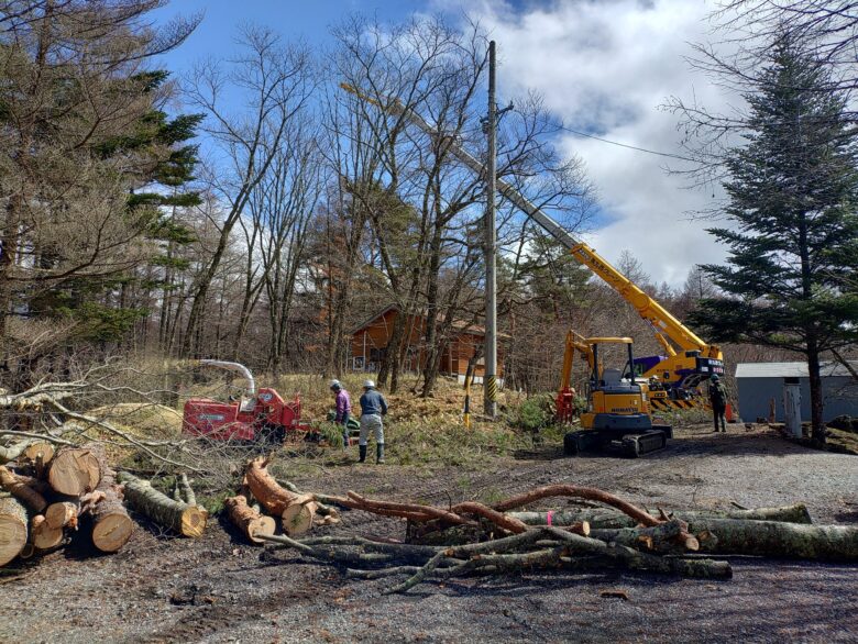 昨日からの両日、蓼科ビレッジ某山荘2件伐採工事。