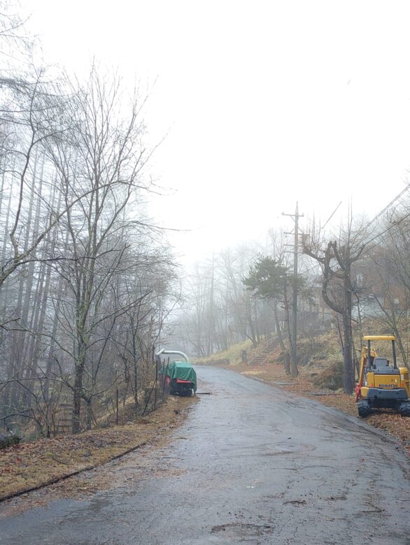 昨日より天気が悪く、そんな中、昨日から二日続けて雨の時間をさけての伐採作業。